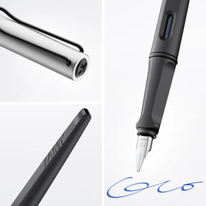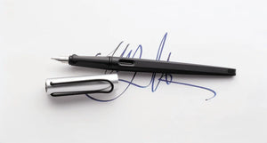 Beautiful handwriting is an expression of personality and individuality. LAMY Joy fountain pens are fitted with an italic calligraphy nib to make your correspondence, handwritten notes, and other creative writing unmistakably personal. With a tapered, ergonomic design and a spring-loaded silver wire clip, the LAMY Joy sits comfortably in the hand with a weight and balance specifically engineered for creative writing. Interchangeable nibs allow you to unleash your creativity and experiment with an abundance of writing and drawing styles.